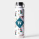 Dogs Pattern & Vintage Flowers Monogram Water Bottle
