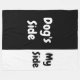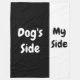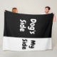Funny blanket that shows who's the boss. Left, larger side of blanket says "Dog's Side" and the Right, smaller side says "My Side". Written in easy to identify Chewy typeface on opposite black and white color scheme. Also available in smaller sizes.