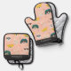 This cute oven mitt & pot holder features your text with dogs wearing sunglasses or glasses on a pink background. Personalize it for your needs. You can find matching products at my store.