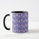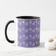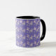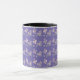 Dogwood pattern on purple background on a mug. Lovely pattern of dogwood petals. Drink your morning coffee with a touch of spring.