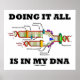 Showcase your wry molecular biology side with this poster featuring DNA replication along with the following saying for all who strive to do it all: "Doing It All Is In My DNA". Memorable geek attitude poster for anyone who manages to do it all!