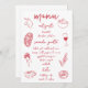 Share your special occasion dinner menu with this beautiful Italian inspired design featuring handwritten style cursive lettering accented with hand drawn food illustrations in tomato red. Illustrations include penne pasta, wine, Sicilian lemon, tomatoes, bruschetta, spaghetti on a fork, cake, and coffee. Customize the menu title and up to three courses.