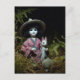 AI generated beautiful doll walking a mossy forest path with a cute rabbit