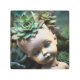 A vintage porcelain doll with a succulent growing out of the head in the middle of a succulent garden. AI generated art