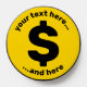 Dollar sign. Custom sign font color. Custom background color. Two custom text fields on circle.