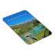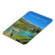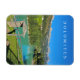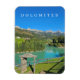 A beautiful view of a small lake in the Dolomites mountain range near the village of Moena in Italy printed on a souvenir fridge magnet.