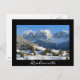 Dolomites village in winter black text postcard