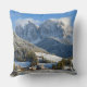 Throw pillow with the village St. Magdalena (Santa Maddalena) with its church in the Villnoesstal in South Tyrol, Italy, in the snow during winter.