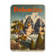 A breathtaking and nostalgic depiction of the Dolomites, a stunning mountain range in northern Italy. The design captures the jagged peaks, dramatic rock formations, and lush valleys, showcasing the range's unique beauty. Rendered in a vintage style, the artwork evokes the majestic and rugged charm of the Dolomites, inviting viewers to explore its alpine landscapes, serene lakes, and picturesque meadows.