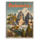 A breathtaking and nostalgic depiction of the Dolomites, a stunning mountain range in northern Italy. The design captures the jagged peaks, dramatic rock formations, and lush valleys, showcasing the range's unique beauty. Rendered in a vintage style, the artwork evokes the majestic and rugged charm of the Dolomites, inviting viewers to explore its alpine landscapes, serene lakes, and picturesque meadows.