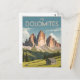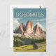A breathtaking and nostalgic depiction of the Dolomites, Italy, renowned for their dramatic mountain peaks and stunning natural beauty. The design captures the rugged alpine landscape with towering limestone cliffs, lush green meadows, and serene mountain lakes. Rendered in a vintage style, the artwork evokes the tranquil charm and adventurous spirit of the Dolomites, inviting viewers to experience its outdoor allure and scenic majesty.