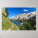 summer view of Fedaia lake and pass with mount Marmolada on background, Trentino, Italy
