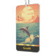 This delightful air freshener features a charming dolphin gracefully leaping through vibrant ocean waves. Set against a stunning sunset backdrop, with mountains and clouds casting warm hues across the sky, it captures a moment of joy and tranquility.