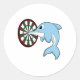 Dolphin at Darts with Dartboard Classic Round Sticker