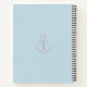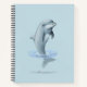 Cute dolphin emerging from the ocean with script and anchor on the back side on light blue Notebook. The anchor can be customized and the script ready to be personalized.