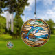 Celebrate the playful spirit of the ocean with the "Dolphin Dance" wind chime, beautifully crafted in a stunning stained glass look. This AI-generated design features graceful dolphins in a vibrant array of colors, capturing their joyous leaps and the essence of marine life. This is faux stained glass, not transparent. Ideal for hanging in your garden, patio, or nautical-themed space, this wind chime adds a touch of whimsy and charm to your decor. The gentle chimes create a calming sound, reminiscent of the ocean waves, making it a perfect gift for dolphin lovers and beach enthusiasts alike.