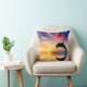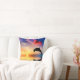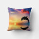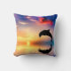 A gorgeous throw pillow containing a picture of a dolphin driving through the water at sunset.