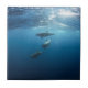 Stunning underwater photography of a dolphin family playing beneath the surface.