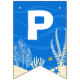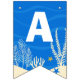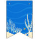This cute beach themed birthday party bunting banner features a beautiful underwater ocean background with pretty sea coral and a cute dolphin in the center. Perfect blue decoration for a pool party or luau.