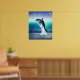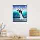 This poster features a beautiful digital art illustration of a dolphin jumping out of the ocean with the night sky in the background.