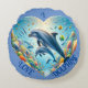 Dolphin Love Customizable Round Pillow. Introducing our beautiful throw pillow featuring a heart filled with dolphins! This undersea image showcases playful dolphins, tropical fish, and coral forming a heart shape, all accompanied by the heartwarming caption "I Love Dolphins". Not only that, but this pillow can also be personalized with your name or the name of someone special. Dive into comfort and show your love for these magnificent creatures with our customizable dolphin pillow!