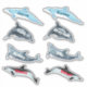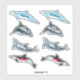 Dolphin shaped stickers with name templates for a kid's party. Create name stickers to use on paper goods, favor bags, or place settings for a kid's dolphin themed birthday. Add each name over a variety of dolphin images that come on sheets in various sizes. The sticker size will correlate to the size sheet ordered.