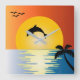DOLPHIN SILHOUETTE AT SUNSET SQUARE WALL CLOCK