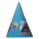 Celebrate in style with a festive dolphin party hat featuring three playful dolphin photos tiled across the design. Between each dolphin, cheerful balloons add color and energy, while the gradient aqua background creates a lively ocean vibe. Under each dolphin, bold text reads “Happy Birthday,” the celebrant’s name, and “Dive Into Fun,” making this hat a joyful centerpiece for any under‑the‑sea celebration. Perfect for kids’ birthdays, ocean lovers, and splash‑filled parties, this hat adds a coordinated touch to your dolphin‑themed event.