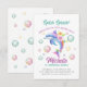 With a dolphin theme, it features a cute dolphin in the center with floral details and beautiful soap bubbles. The "Splish Splash" text at the top makes this invitation unique and special. The back also features several colorful soap bubbles. The invitation comes in shades of pink, lilac, turquoise, and yellow. Easily personalize this design with your own details!