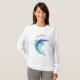 A pretty purple dolphin swimming on a beautiful light blue background.