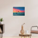 Poster featuring artwork of a playful dolphin pod swimming and leaping in the ocean under a beautiful beach sunset (original artwork KL Stock)