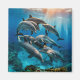 This magnet is shown with a photo art print of dolphins.