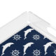 Nautical pattern with silhouettes of dolphins and steering wheels | © and ® Bigstock® - All Rights Reserved.