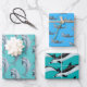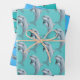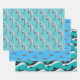 Dolphin wrapping paper, in three designs and colors, printed on three large sheets that come rolled, not folded. Sea blue, turquoise and lagoon green colors have various types of dolphin swimming. The designs are perfect for any birthday celebration, or summer party gift giving.