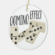 Lightweight, smooth, pure white ornament with nice sheen. Perfect size to be seen from across the room ... and to attract closer inspection! Price was great for ordering enough for the whole family! Clear, bold black design just as requested. Matches the order exactly. Just so nice!