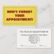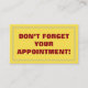 This appointment reminder card features contrasting red and yellow colors on the front, along with the message "DON’T FORGET YOUR APPOINTMENT!". The back features a personalized appointment reminder form.
