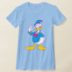 Brighten up your wardrobe with this electric and cheerful Donald Duck illustration! Featuring a classic full-body pose with a friendly peace sign, this design gets a stylish update with a vibrant, non-traditional color palette. The combination of bright cyan, magenta, and sunny yellow gives this artwork a fresh, "neon-pop" aesthetic that stands out from the crowd. The clean, purple-tinted linework and bold blocks of color create a high-contrast look that feels both nostalgic and totally current. It’s an optimistic, fun-loving graphic that’s perfect for anyone who wants to share a little peace and a lot of personality.