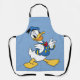 Great color and even though I ordered the kid size, it covers well enough to use during the holidays. I am not a big woman and prefer a shorter apron. I stand 5"6" and the length of the garment goes to mid-thigh. The tie straps fit well at my waist and even though there is no neck strap adjustment, the opening is plenty big enough. I am happy with the size and fit. I am sharing my apron with my 10 year old grandson, too! The color is vibrant and looks good, as shown on the website. The stitching looks strong and reinforced. Photographed is front side and back side of the apron, reinforced straps and coloring. My phone camera may not be the best at showing the details.