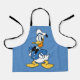 Great color and even though I ordered the kid size, it covers well enough to use during the holidays. I am not a big woman and prefer a shorter apron. I stand 5"6" and the length of the garment goes to mid-thigh. The tie straps fit well at my waist and even though there is no neck strap adjustment, the opening is plenty big enough. I am happy with the size and fit. I am sharing my apron with my 10 year old grandson, too! The color is vibrant and looks good, as shown on the website. The stitching looks strong and reinforced. Photographed is front side and back side of the apron, reinforced straps and coloring. My phone camera may not be the best at showing the details.