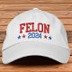 Donald Trump 2024, this funny hat for the Trump supporter dad, husband, friend or anyone makes a bold statement. Felon 2024 with red white and blue stars on a classic hat with a message of patriotic pride! Cool popular red hat supporting a Vote for Donald Trump 2024 political Campaign with this fun embroidered baseball cap MAGA theme merchandise in red and white or other colors. Great for republican supporters of the conservative candidates