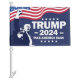 Trump 2024 car flag features the text Trump 2024, Take America Back, the American Flag, Donald Trump and white stars. Show your support for President, Donald Trump for the 2024 election with this sturdy, weatherproof car flag.