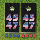 Natural Wood Cornhole Set, Red and Royal Blue bags