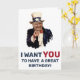 DONALD TRUMP BIRTHDAY CARD with TRUMP dressed as UNCLE SAM. All text and fonts can be modified.