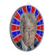 Photo of Donald Trump has been altered into a caricature design. Behind the face image is a red white and blue pinwheen style background. Just the thing for your gameroom whether you love him or hate him.