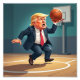 Cartoon image of Donald Trump playing basketball