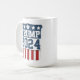 DONALD TRUMP for President in 2024 mug with round red, white and blue shield design. Republican Party Ticket.