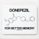 Donepezil is an acetylcholinesterase inhibitor and is known as being a palliative treatment for Alzheimer's disease. Showcase your wry chemical molecule side with this mousepad featuring the chemical structure of donepezil along with the caption that says it all: "For Better Memory". Memorable scientific saying mousepad for a loved one affected by Alzheimer's disease.