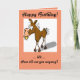A cartoon donkey graces the front of this card wishing someone a Happy Birthday. A comical card.