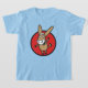 A T-shirt with a funny cartoon donkey on a red circle. A friendly figure that you like to carry through the day.