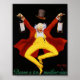 Colorful and animated vintage liquor advertisement. A balding white haired man with a red jacket, black top hat and yellow pants, dancing while holding two bottles of liquor.